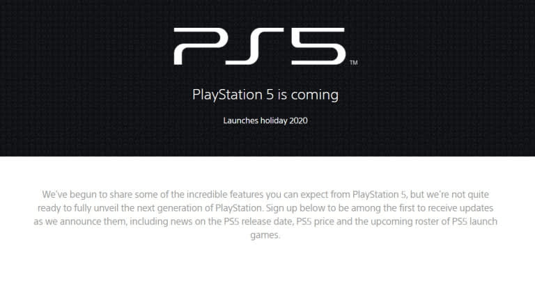 すでに発表済みの「PS5」ロゴはあるものの、具体的な情報は記載されていませんが、メールアドレスを登録しておけばPS5の最新情報が得られるとアナウンスしています。