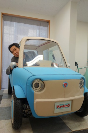 時速45km以下でゆっくり走る、ボディーが布製で人に優しいなど、ユニークな特徴を持つ2人乗りの超小型EVを2016年に開発。ただ、公道を自由に走ることができないといった法制度の壁に阻まれ、現在は開発をストップしている。