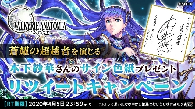 「蒼耀の超越者」「蒼耀の超越者★」の登場を記念し、公式Twitterアカウントでは、本日より「蒼耀の超越者」「蒼耀の超越者★」を演じる木下紗華さんの直筆サイン入り色紙が抽選で当たるプレゼント企画がスタートしました。ぜひ奮ってご応募ください。