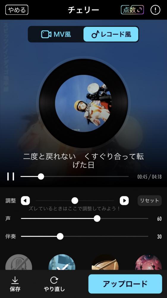 歌い終わると、保存して自身の歌声を確認することができます。 また、アップロードすることで公開もできます。公開したくない人は押さないようにしましょう。