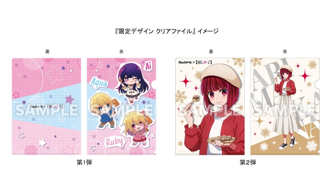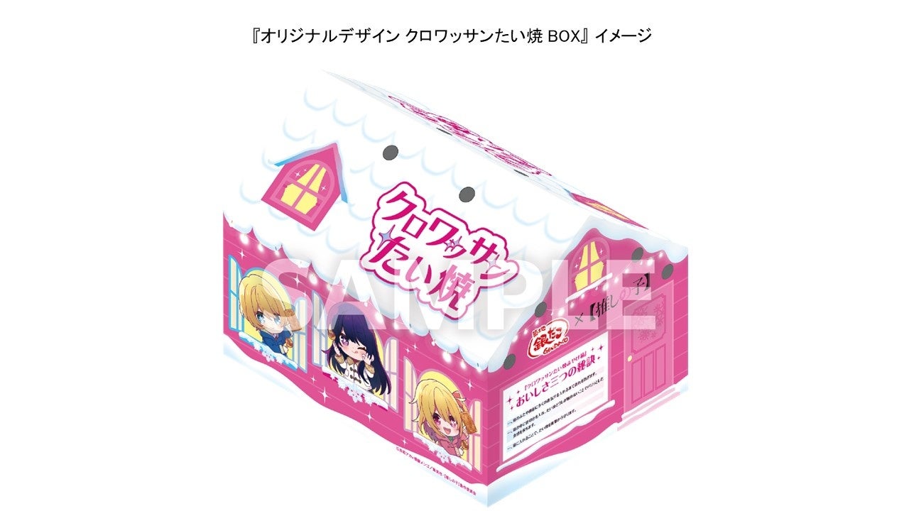 今回のコラボレーションでは、作中に登場する “アイ” や “B小町” をイメージした 『コラボたこ焼(8個入り)、特製スリーブ、オリジナルピック、限定コラボグッズ付』 、オリジナルデザイン 『だんらんパック(24個入り)、限定デザイン クリアファイル付』 に加え、オリジナルデザイン 『クロワッサンたい焼 BOX(6匹入り)、限定デザイン クリアファイル付』 の販売や、各社宅配サービス利用で 『ミニクリアファイルのプレゼントキャンペーン』 を発売いたします。