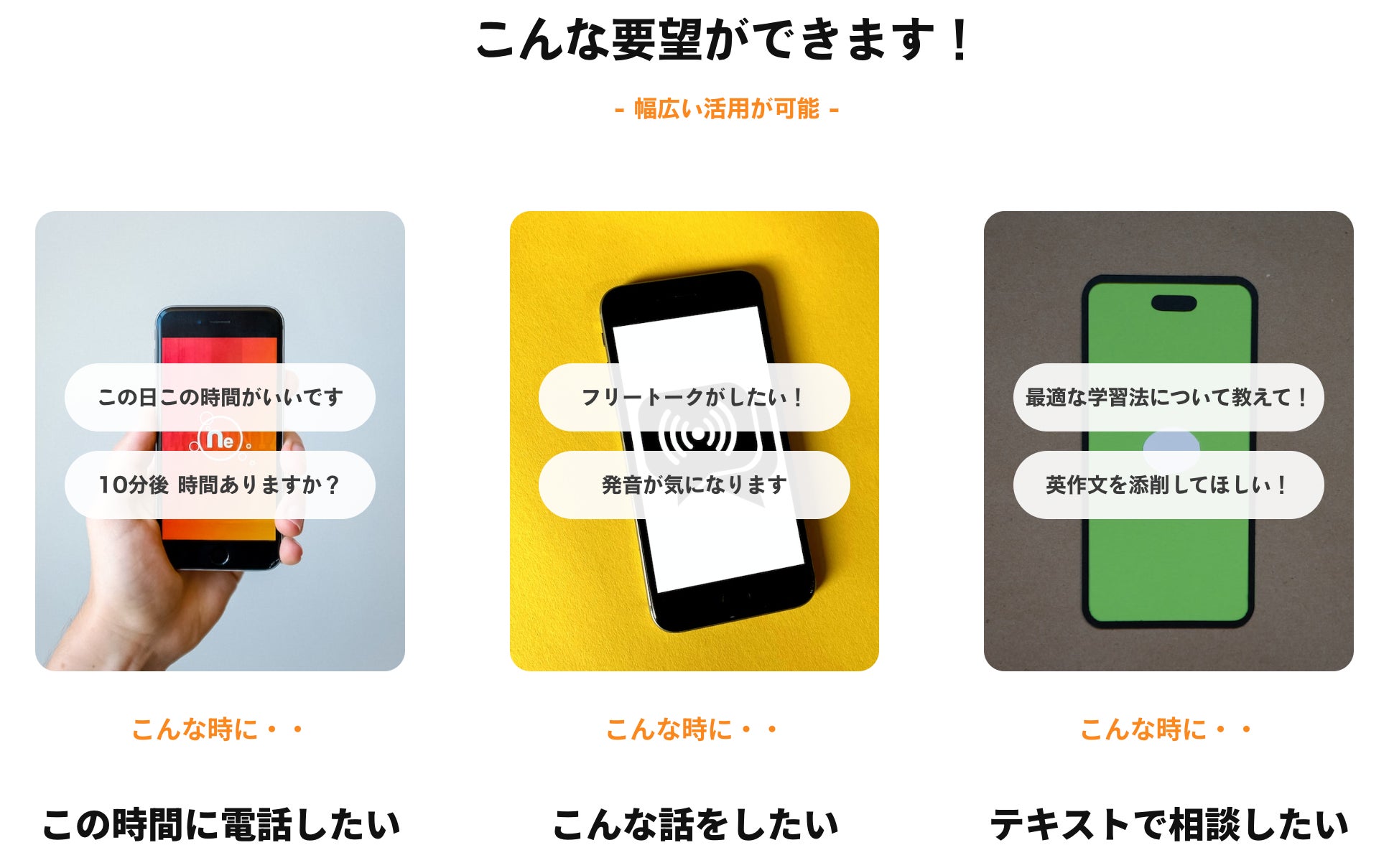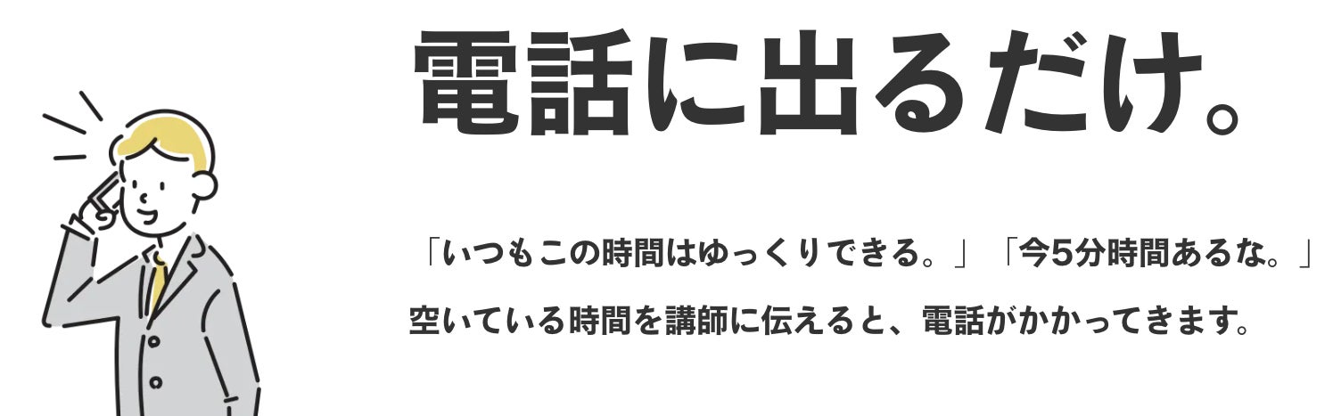 英語学習において発音やライティングも学べる講師が、あなたに電話します。講師としての経験も豊富であり、間違いや日本人との対応にも問題ありません。