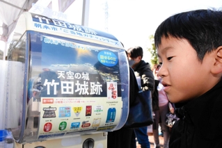国史跡・竹田城跡(朝来市和田山町竹田)のご当地ガチャ「天空の城 竹田城跡」がお目見えした。城の石垣や御城印、花札などをデザインした16種類のキーホルダーが用意され、城跡ファンらの注目を集めそうだ。